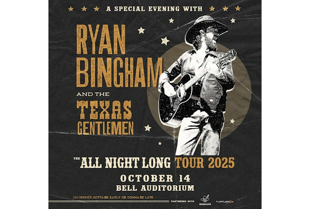 Oscar® and Grammy®-winning singer-songwriter Ryan Bingham will reunite with The Texas Gentlemen to extend The All Night Long Tour into the Fall with a show coming to the Bell Auditorium on October 14th.