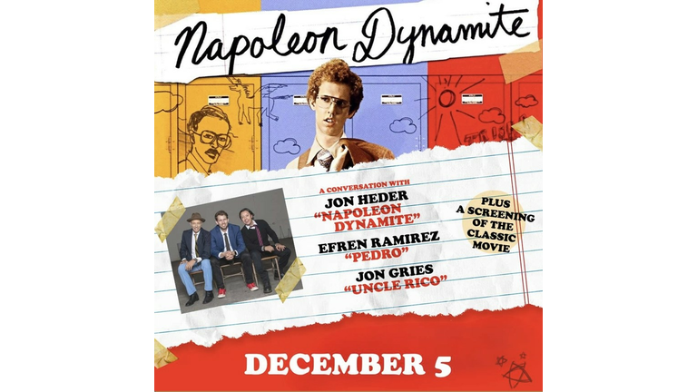 This unique evening includes a full screening of Napoleon Dynamite followed by a lively, freewheeling, interactive experience, with fan-favorite cast members; Jon Heder (Napoleon Dynamite), Jon Gries (Uncle Rico) and Efren Ramirez (Pedro).